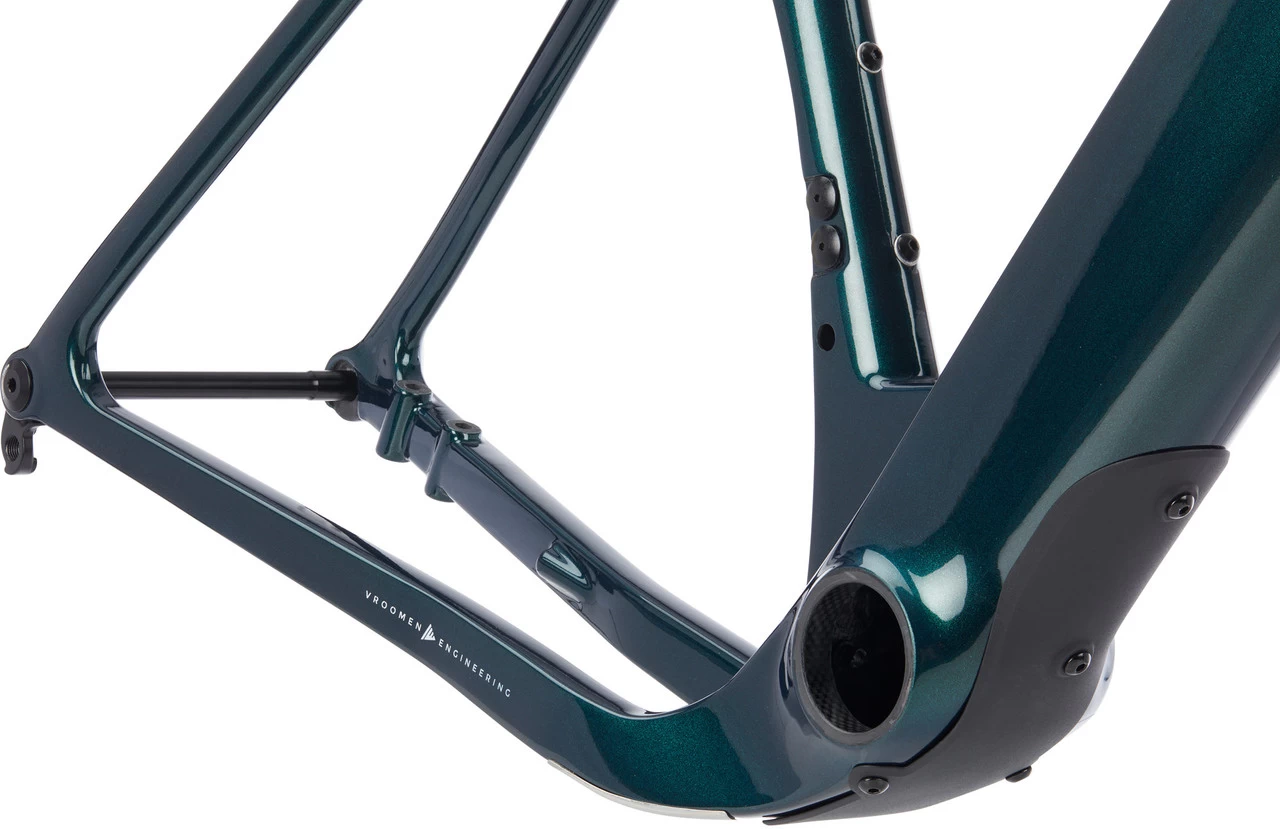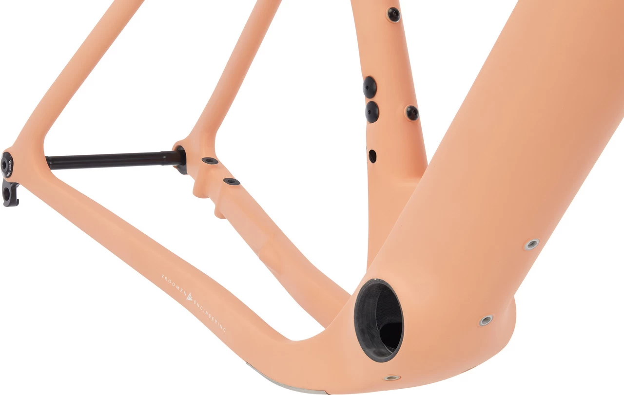 Le kit de cadre Exploro Ultra de 3T est idéal si tu veux te construire un vélo de gravel en carbone solide et endurant avec des pneus vraiment larges. Tu as la possibilité de monter des pneus jusqu’à 61 mm ! Ce vélo fait le lien entre les cadres de vélo de route rapides à l’aérodynamique optimisée et les cadres de VTT qui ont fait leurs preuves sur les trails. La fourche en carbone Exploro Ultra ainsi que le tube diagonal qui se rétrécit du boîtier de pédalier au tube de direction ont une aérodynamique optimale. Et le tube de selle a également un profil conçu pour couper le vent. Cependant, la tige de selle elle-même est ronde. Pour avoir encore plus de contrôle sur les trails en descente, tu peux sans problème monter une tige de selle rétractable.
