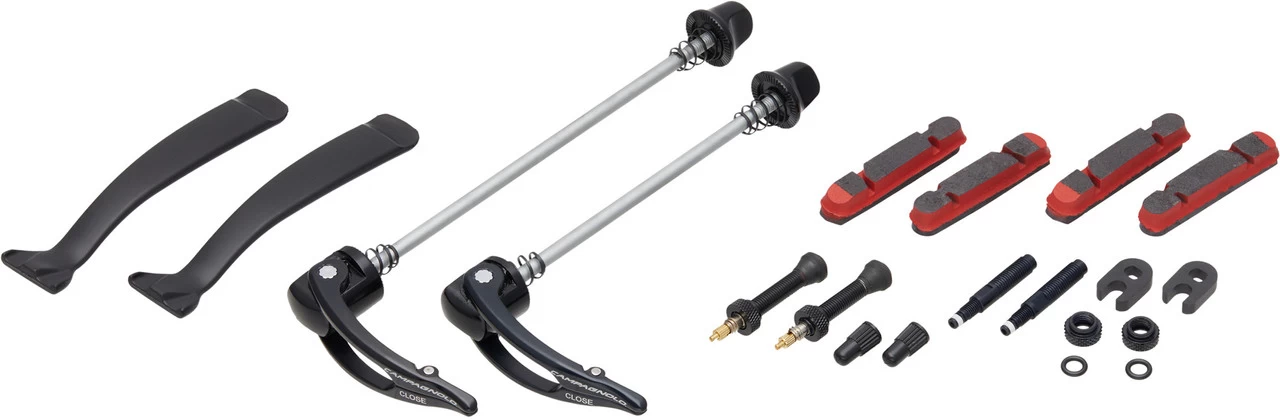 Jantes : noires avec autocollants noirsMoyeux : noirsRayons : noirsÉcrous : noirsVersions :Set de 28″ (avant 9×100 + arrière 10×130) Campa :