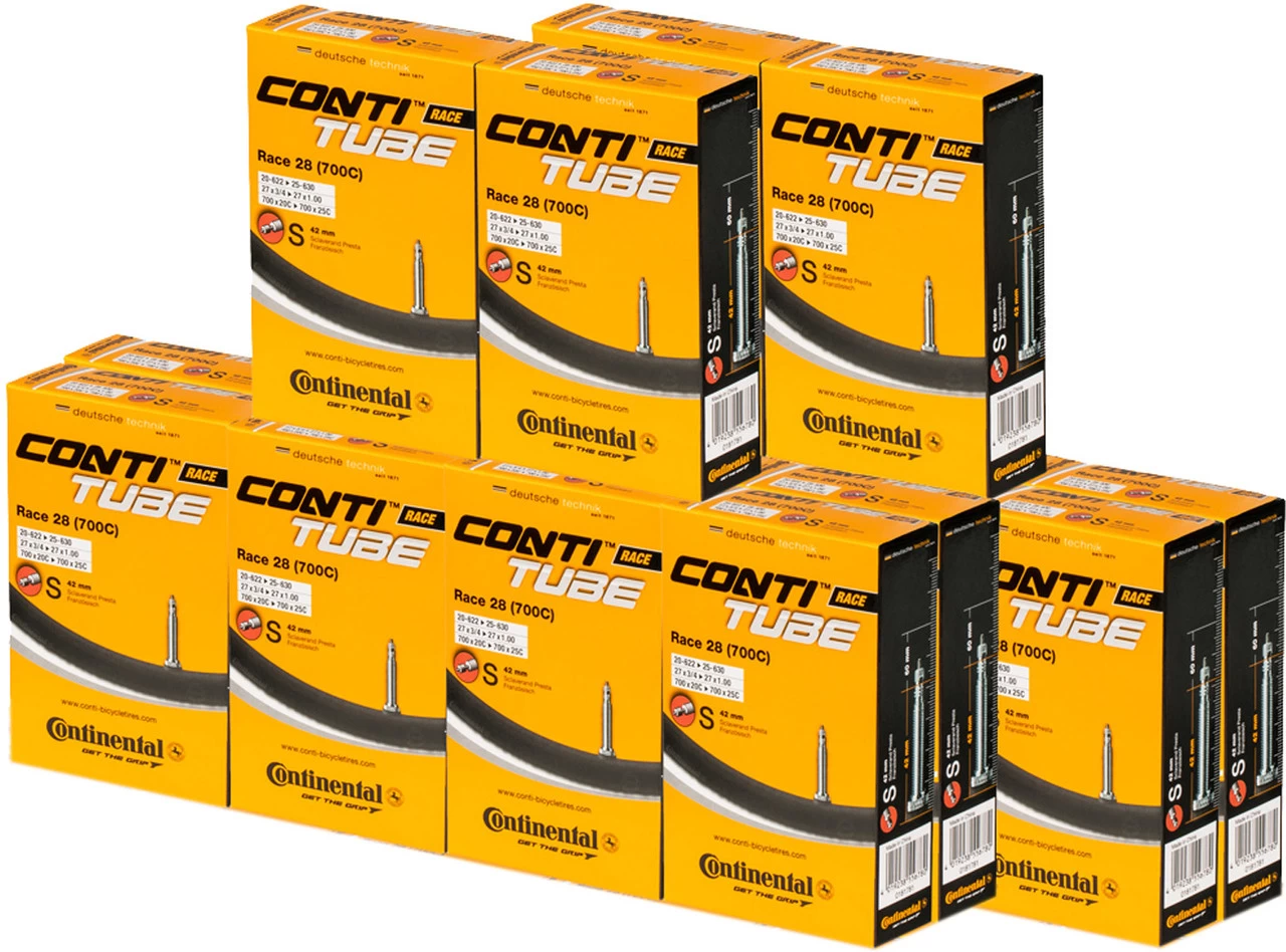 Désignation/synonymes : valve Sclaverand (SV), valve française, valve PrestaDiamètre extérieur : 6,5 mmAutres : la valve est dévissable sur toutes les chambres à air Continental avec valve SV (pour permettre l’utilisation d’un prolongateur de valve ou le remplissage avec un liquide anticrevaison, etc.).Contenu :20 x chambres à air Continental Race 28