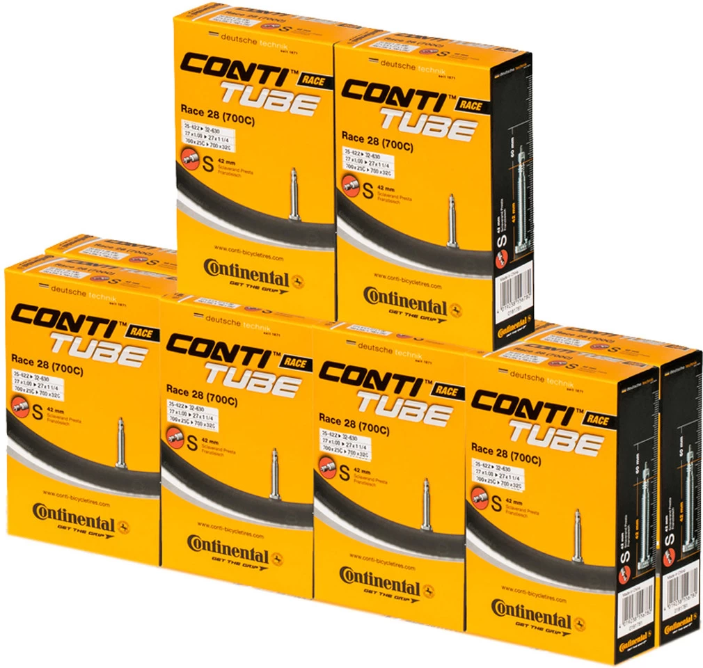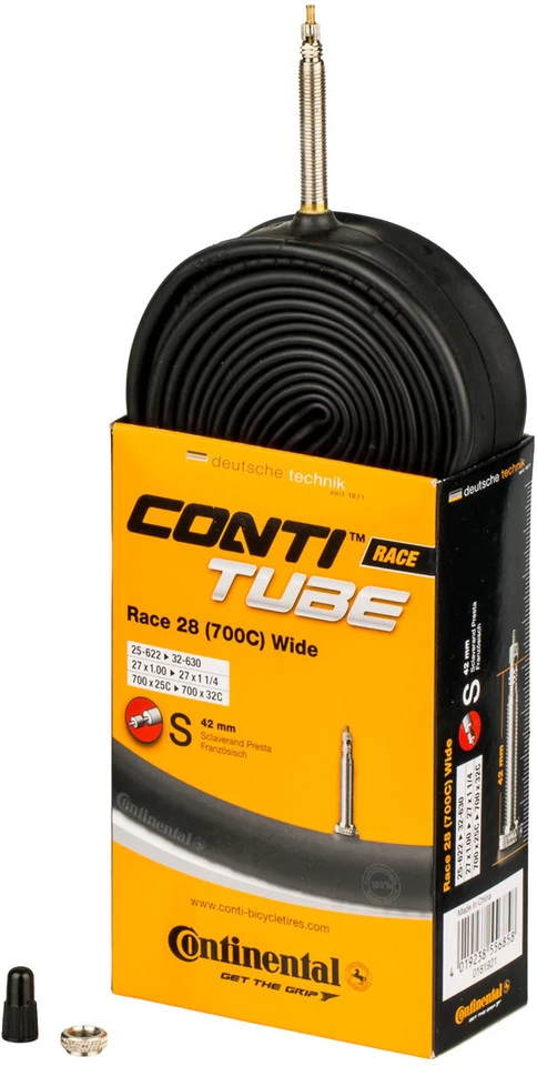 Désignation/synonymes : valve Sclaverand (SV), valve française, valve PrestaDiamètre extérieur : 6,5 mmAutres : la valve est dévissable sur toutes les chambres à air Continental avec valve SV (pour permettre l’utilisation d’un prolongateur de valve ou le remplissage avec un liquide anticrevaison, etc.).Contenu :10 x chambre à air Continental Race 28 Wide