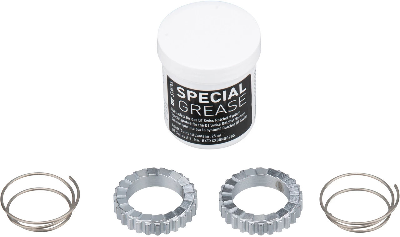 Contenu :2 x roues dentées DT Swiss2 x ressorts DT Swiss1 x graisse DT Swiss