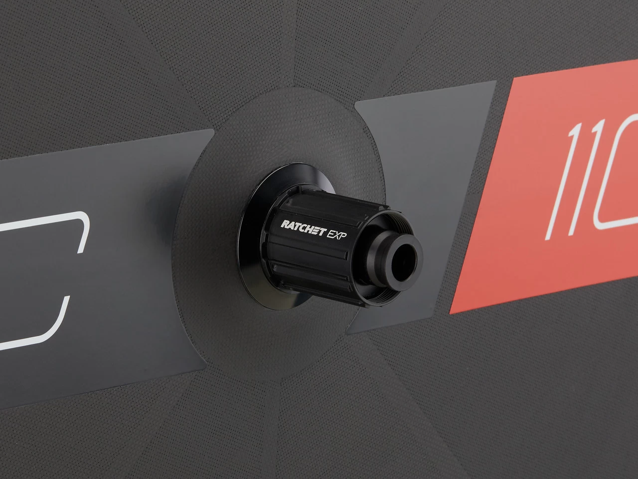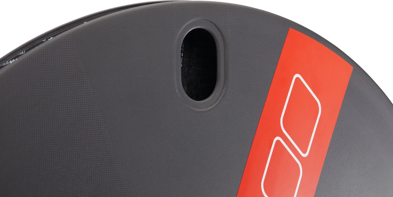 La roue pleine est conçue pour des pneus de 28 mm de large et pèse à peine 1100 g. Tu profites également d’un « effet voile » prononcé. Du côté de la cassette, la roue est plate, laissant suffisamment d’espace pour ton dérailleur arrière. Le côté du frein a une forme légèrement convexe, ce qui répartit les forces de freinage et d’entraînement de manière optimale. Le moyeu 180 pour disques de frein Center Lock, profilé et doté d’une roue libre à disque denté Ratchet EXP garantit également une propulsion maximale. Pour permettre à la force de tes jambes de se développer le plus efficacement possible, la roue libre dispose de 36 dents qui garantissent une transmission directe de la puissance et permettent ainsi de réduire au minimum toute course à vide indésirable. Le trou de la valve est dissimulé derrière un capuchon en carbone. Tu peux l’ouvrir facilement sans outils en le faisant tourner de 90 degrés. Pour ne pas entraver l’aérodynamisme, le couvercle des trous de valve est pleinement intégré dans la paroi de la roue pleine.