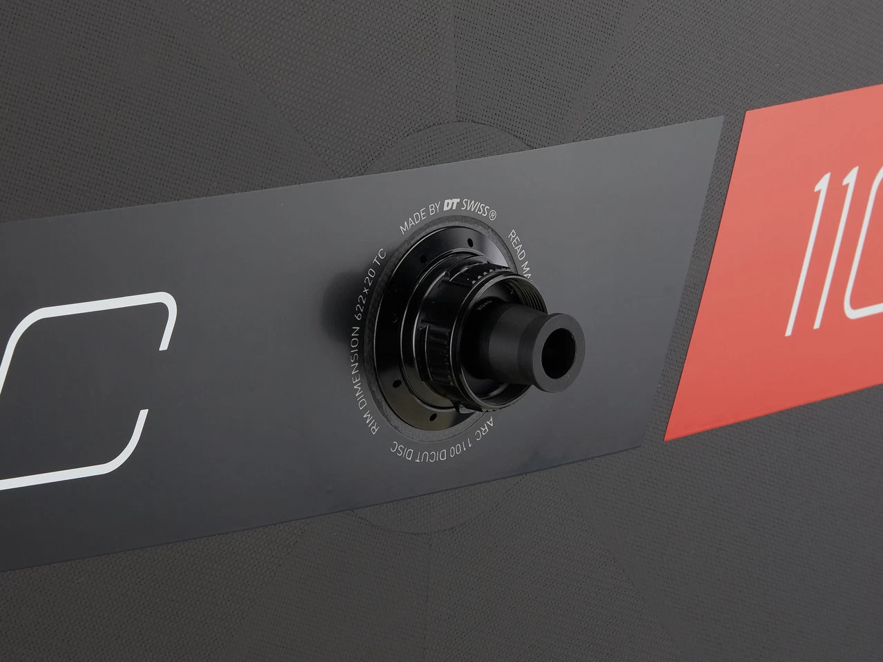 La paire de roues DT Swiss 28″ , composée de la roue avant ARC 1100 DICUT 80 mm et de la roue à disque ARC 1100 DICUT – aérodynamisme maximal pour les vélos de triathlon