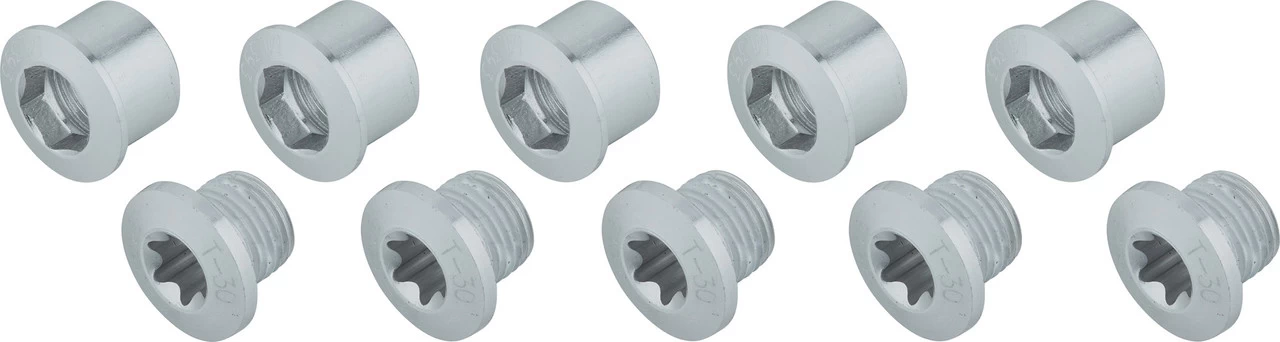 Informations techniques :Matériau :aluminium (7075-T6)Compatibilité :Road 2 vitesses (5 bras)Caractéristiques :anodisé noir ou argentéNuméros du fabricant :noir:390-1005argenté:390-1000Contenu :1 x set de 10 vis de plateau FSA1 x clef Torx T30