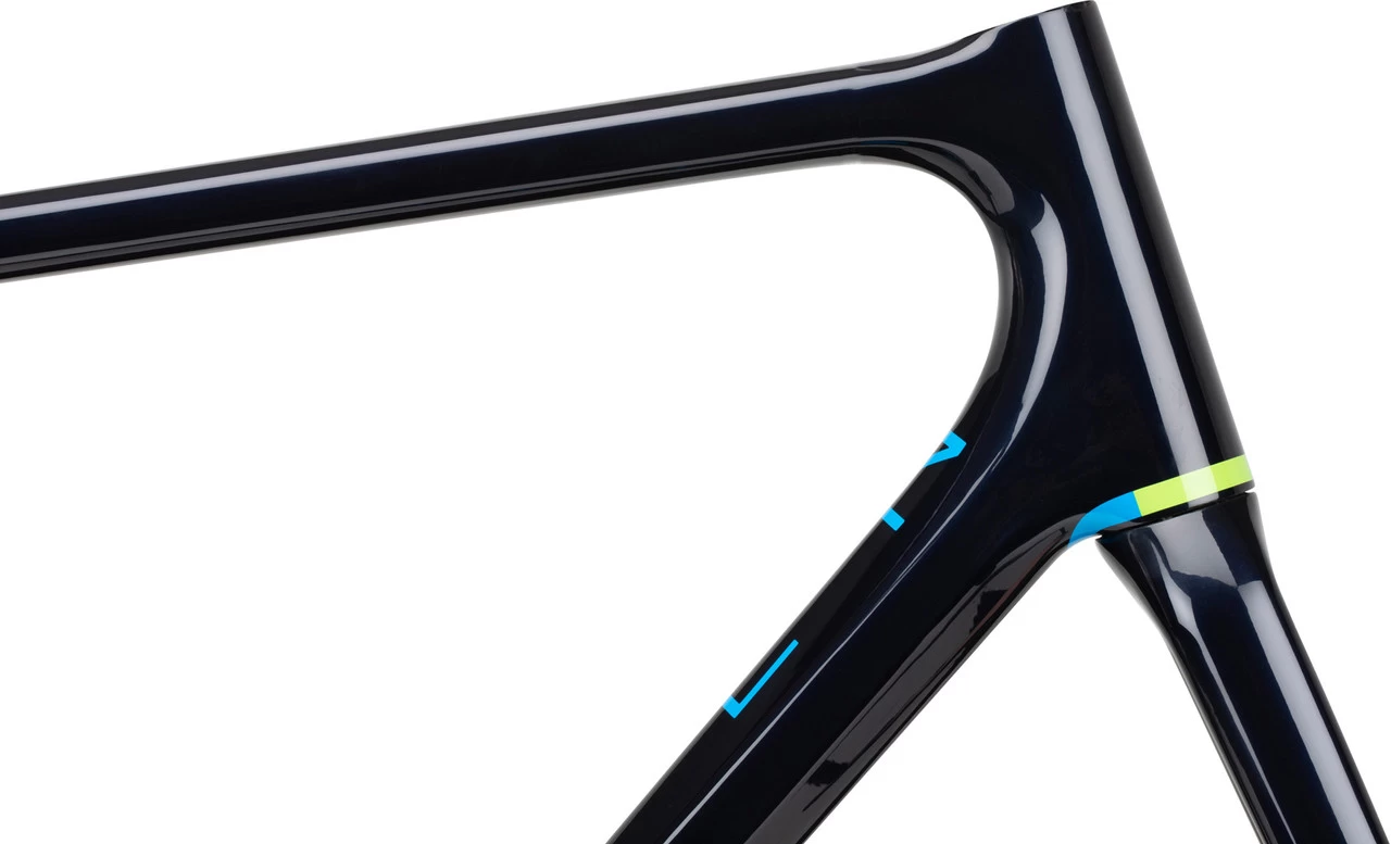 Le kit de cadre OPEN MIN.D. en carbone est la base idéale pour un vélo de route au poids optimisé. En ce qui concerne son design, la tige de selle, qui est fabriquée d’une seule pièce avec le tube de selle, attire particulièrement l’attention. L’assemblage sans soudure crée un confort d’assise exceptionnel et, avec un diamètre de seulement 25 mm, il est particulièrement léger. Pour le finish tuning, tu peux ajuster la tige de selle jusqu’à 15 mm après l’avoir raccourcie. Le lay-up efficace avec une fourche carbone R-Turn maintient le bon équilibre entre rigidité et longévité. Le produit final est prêt pour de hautes performances sur la route. Avec jusqu’à 32 mm de dégagement pour les pneus, tu es également armé pour affronter l’asphalte rugueux et les passages légèrement caillouteux. Tu maîtriseras avec aisance les classiques du printemps et les cols alpins difficiles. L’acheminement interne des câbles ne permet pas seulement un look épuré, mais convainc aussi en matière d’aérodynamisme.