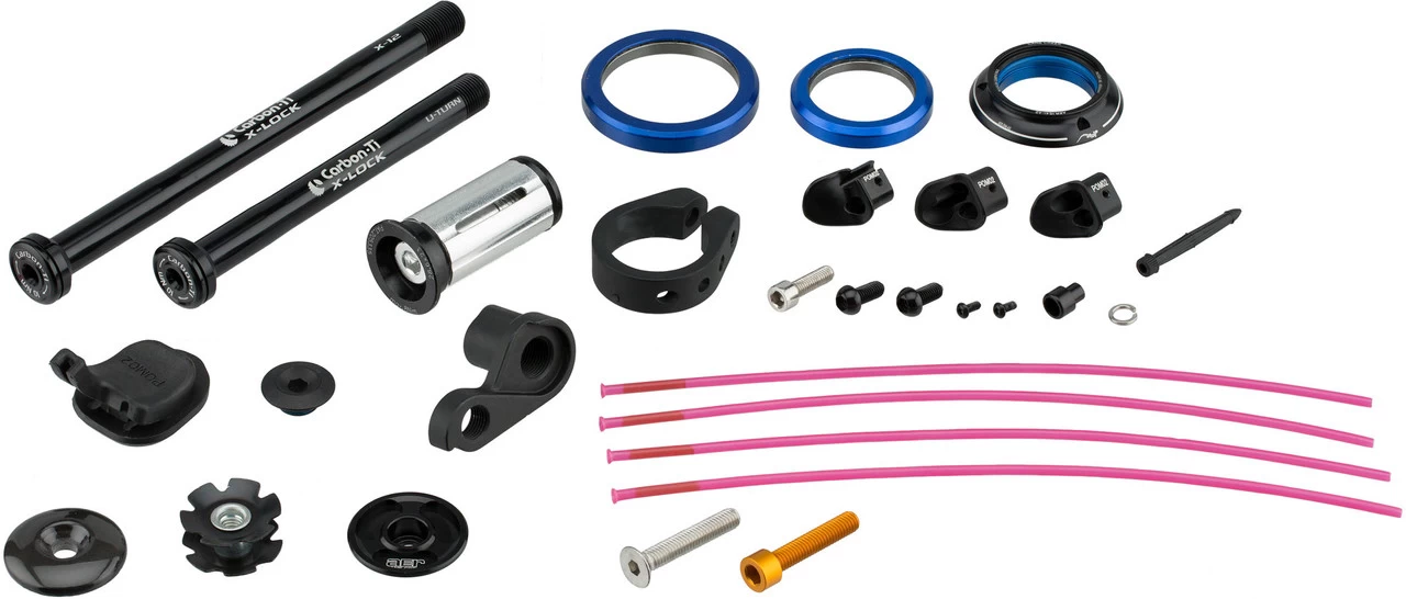 Contenu :1 x cadre OPEN U.P.P.E.R.1 x fourche OPEN U-turn1 x jeu de direction1 x attache de selle1 x axe traversant avant1 x axe traversant arrière2 x pattes de dérailleur1 x fixation pour dérailleur avant1 x set de joints pour l’acheminement interne des câbles2 x vis pour porte-bidon