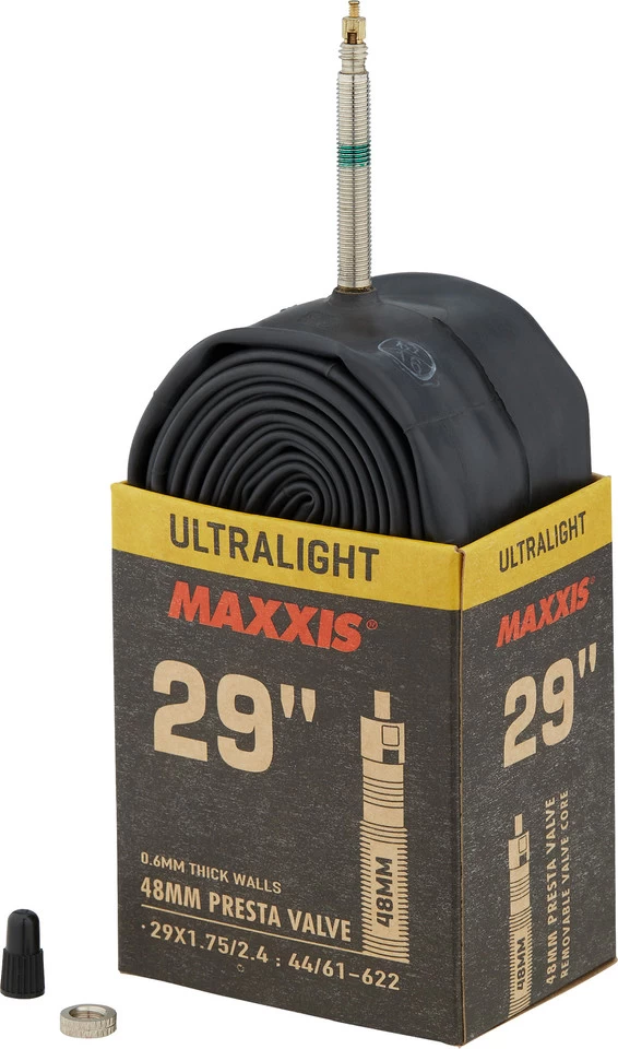 Avec une épaisseur de paroi de 0,60 mm, les chambres à air Maxxis Ultralight sont suffisamment résistantes pour les Worldcup les plus ardus, mais ne pèsent que la moitié du poids des chambres à air standard.
