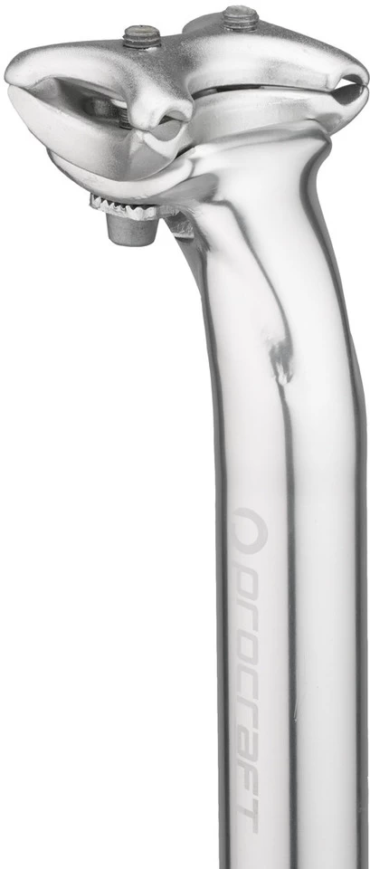 Informations techniques :Matériau :aluminium AL 7075Longueur :350 mmDiamètre :26,8 / 27,0 / 27,2 / 30,0 / 31,6 ou 31,8 mmRetrait :24 mmFixation :fixation à deux visAutres:vis en dacromet très résistantes et traitées contre la corrosion, logo Procraft gravé au laser, réglage en continu de l’angle de la selleIndex des modèles / Numéros du fabricant :argenté / 26,8 :
