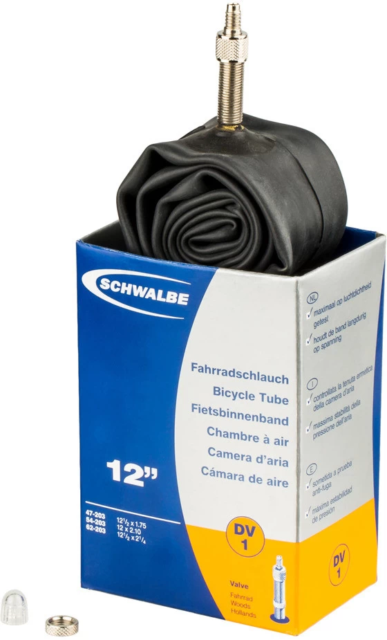 Spécifications :Utilisation :poussette, rouesETRTO:47-203 à 62-203Dimensions du pneu:12 x 1,75″ jusqu’à 12 x 2,10″Type de valve:AV 40 mm, AV 40 mm 45°, DV 32 mm, SV 40 mmDimensions adaptées (ETRTO) :12 x 1,75 (47-203)12 x 2,0 (50-203)12 x 2,10 (54-203)12 1/2 x 2 1/4 (62-203)Versions :12 x 1,75 – 2,1 AV 40 mm