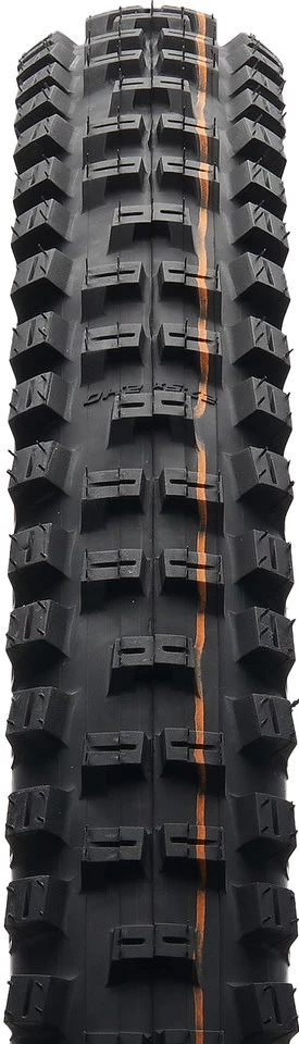 Big Betty est de retour ! Le pneu souple de 27,5″ de la gamme Evolution de Schwalbe est équipé d’un composé ADDIX Soft et d’une carcasse Super Gravity. Les crampons centraux inclinés améliorent les caractéristiques de roulement, les robustes crampons latéraux te confèrent une forte adhérence dans les virages et les longues arêtes de freinage garantissent la traction nécessaire si jamais tu dois quand même freiner.