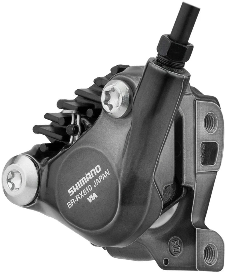 Spécifications :Série:GRX RX810Utilisation :Gravel, Cyclo Cross, Touring & TrekkingVitesses:2, 11Système de vitesses:électroniqueType de frein:hydraulique, 2 pistonsActionnement des freins:huile minéraleConduite:SM-BH90-JK-SSRLongueur de la conduite roue avant/roue arrière:1000 mm/1700 mmInformations techniques – levier de vitesses / de frein :Matériau du levier de frein:aluminiumMatériau du corps de poignée:carbone (CFRP)Montage :attache (fermée)Réglage de la portée:par visOptions de réglage:réglage de la portée et du point de pressionInformations techniques – étrier de frein :Montage :Flat MountPlaquette de frein:résine avec ailettes de refroidissementDesign:en 2 partieMatériau de l’étrier de frein:aluminiumMatériau du piston:céramiqueRaccord de câble:droitCompatibilité :Levier de frein / de vitesses :