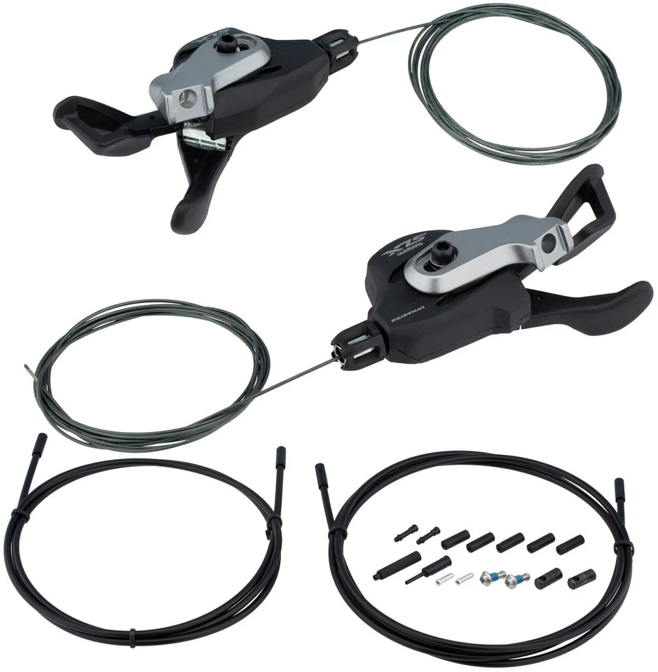 Contenu :1 paire de leviers de vitesses Shimano SLX SL-M7000-B-I1 x câble Shimano 1800 mm1 x câble Shimano 2050 mm1 x gaine de câble Shimano 1320 mm1 x gaine de câble Shimano 1880 mm5 x capuchons scellés Shimano de 6 mm1 x capuchon rallongé Shimano
