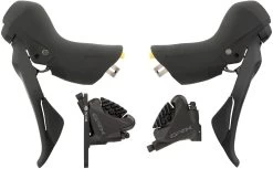 Spécifications :Série:GRX RX400Utilisation :Gravel, Cyclo Cross, Touring & TrekkingVitesses:2, 10Système de vitesses:mécaniqueType de frein:hydraulique, 2 pistonsActionnement des freins:huile minéraleConduite:SM-BH90-JK-SSRLongueur de conduite roue avant:1000 mmLongueur de la conduite roue avant/roue arrière:1000 mm/1700 mmInformations techniques – levier de vitesses / de frein :Matériau du levier de frein:aluminiumMatériau du corps de poignée:matériau synthétiqueMatériau serrage:acierMontage :attache (fermée)Réglage de la portée:par visOptions de réglage:Réglage de la portéeInformations techniques – étrier de frein :Montage :Flat MountPlaquette de frein:résine avec ailettes de refroidissementDesign:en 2 partieMatériau de l’étrier de frein:aluminiumMatériau du piston:résineRaccord de câble:droitCompatibilité :Levier de frein / de vitesses :