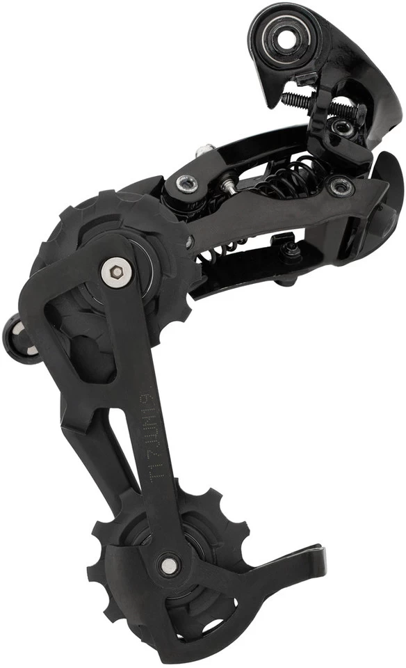 Dans les nouveaux dérailleurs arrière des séries X0 et X9, la technologie Roller Bearing Clutch permet à la chape de se tendre. Un embrayage à roulement à aiguilles empêche tout mouvement trop léger vers l’avant, la chaîne reste tendue et ne heurte pas les bases. Cela empêche la chaîne de sauter, même sans guide-chaîne sur le pédalier.