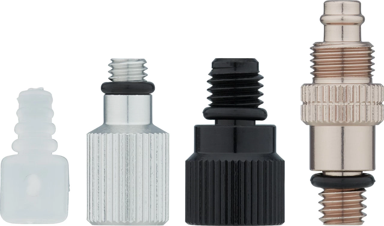 1 x seringue de purge1 x tuyau avec embout de purge pour l’étrier de frein1 x tuyau avec embout de purge pour le levier de frein1 x raccord M5 (argenté)2 x raccords M6 (argentés)1 x raccord M7 (noir)