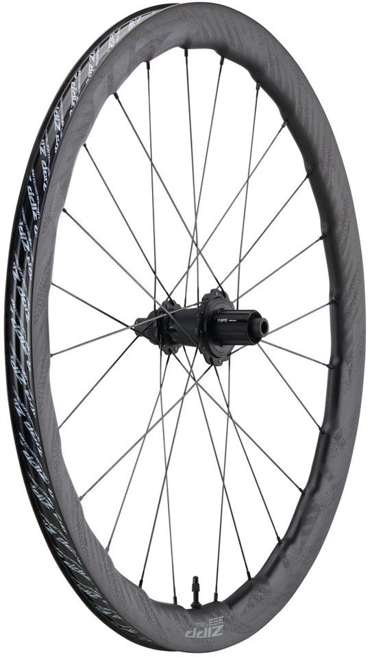 La Zipp 353 NSW Disc est une paire de roues de route très aérodynamique avec des jantes tubeless en carbone sans crochets de 45 mm de haut et 25 mm de large et le set retravaillé de moyeux Cognition V2. La roue libre Axial Clutch V2 garantit un engagement plus rapide et une réduction de la friction. Les roues ne pèsent que 1250 g environ, ce qui, avec leur stabilité au vent de travers et leur vitesse, les rend intéressantes pour les puncheurs et les spécialistes des échappées.